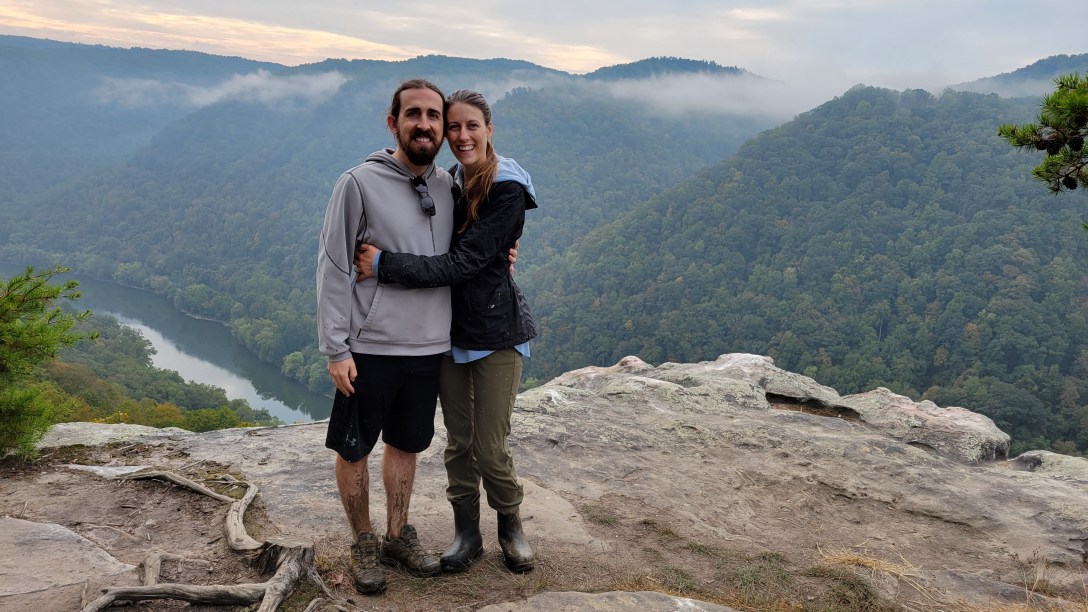 When we got engaged at Grand Canyon National Park, our hiking friends suggested we buy a National Parks passport to collect stamps at more parks on our journey through life together. Since we live in Virginia, we’ve been to Shenandoah National Park many times – it’s so nice to have it just down the road from us! In 2020, the New River Gorge in West Virginia became a national park so we made a plan to travel there for our anniversary!